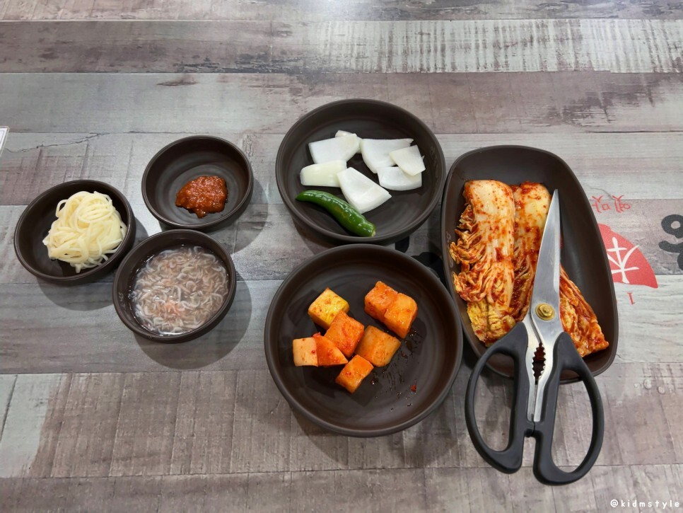 서빙이 빠르다. 반찬이 깔렸다. 모자란 것들은 셀프 코너에서 직접 가져다 먹으면 된다.