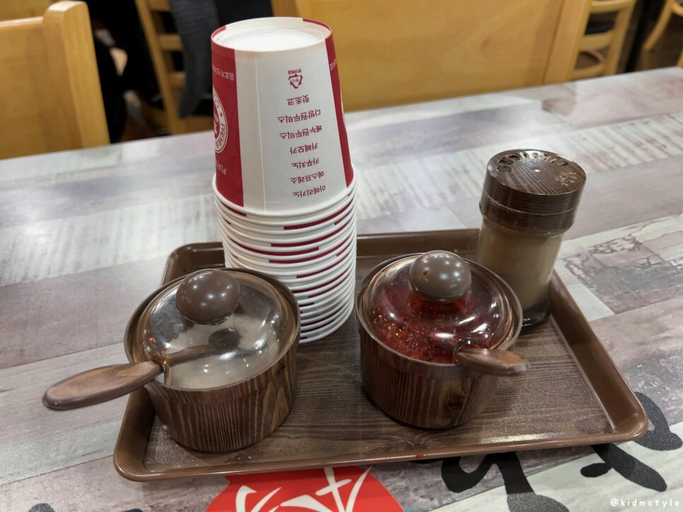 소금, 종이컵, 양념 다대기, 후추