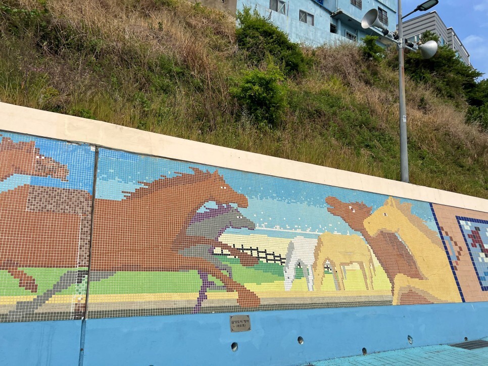 산책을 하다가 만난 타일 벽화 작품입니다. '절영도의 명마'라는 작품인데요. 왜 말 그림이 커다랗게 그려져 있을까 하고 산책을 하다가 의문을 가지는 분들도 많으실 거예요.