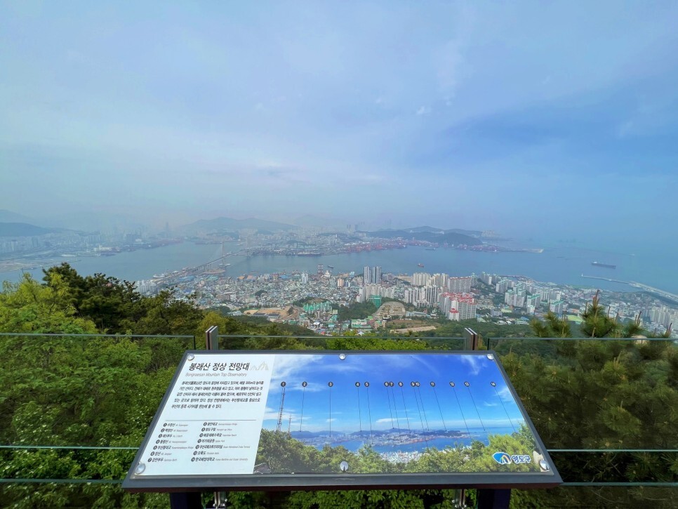 봉래산 정상에서 바라보는 풍경은 기가 막히답니다. 정상 벤치에 앉아서 시원한 음료를 한잔하다가 갑자기 궁금해지더군요. 과거 영도에서 말을 많이 키웠을 때 말을 타고 봉래산 정상까지 올라왔을까요?