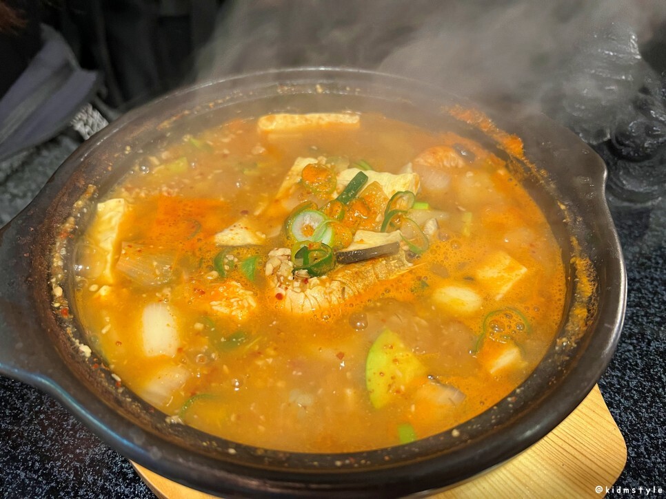 추운 날씨라 따뜻하게 떠먹을 국물이 생각나서 무엇을 시킬지 고민하다가 딱새우 된장찌개를 주문해 본다. 사장님이 된장찌개도 서비스라고 얘기하시네. 사소하지만 정말 기분이 좋아지는 대목이다.