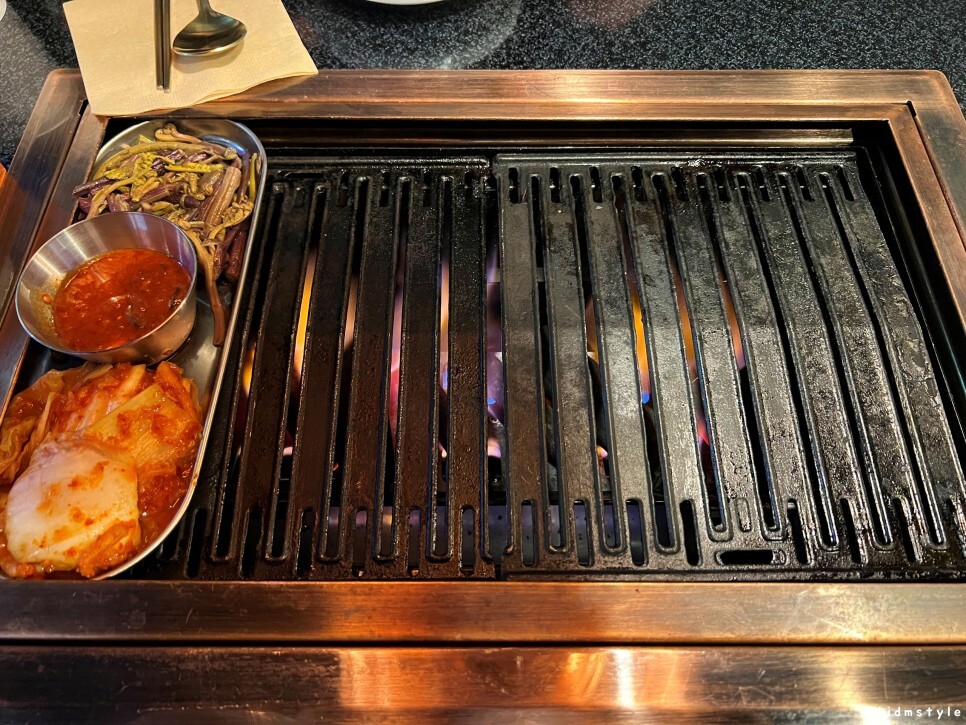 이 집은 고기를 직접 구워주는 집이다. 나는 집게 마스터이므로 직접 굽겠다고 말하니 숄더랙 굽는 방법을 친절하게 알려주시네.