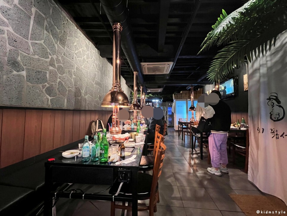 입구에 돌하르방이 반갑다. 제주옥탑 흑돼지구이 전문점이라는 간판 역시 눈에 들어온다.