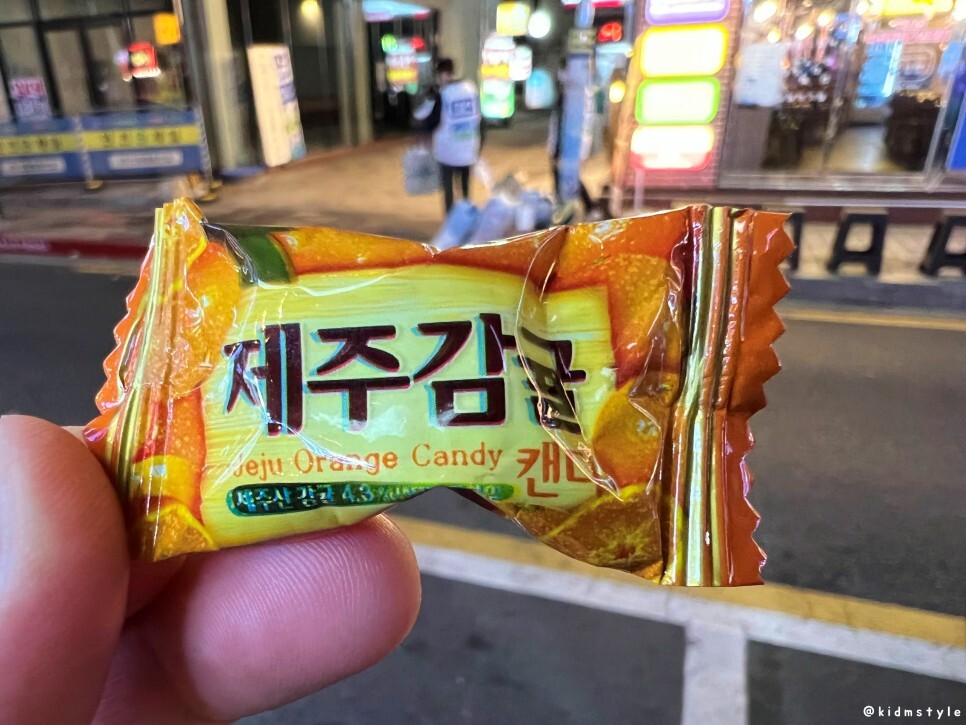 맛있게 잘 먹었다. 계산서와 함께 손에 쥐어진 제주감귤 캔디가 정겹다.