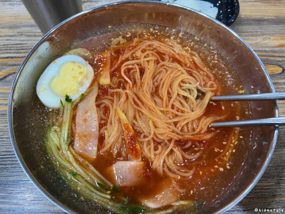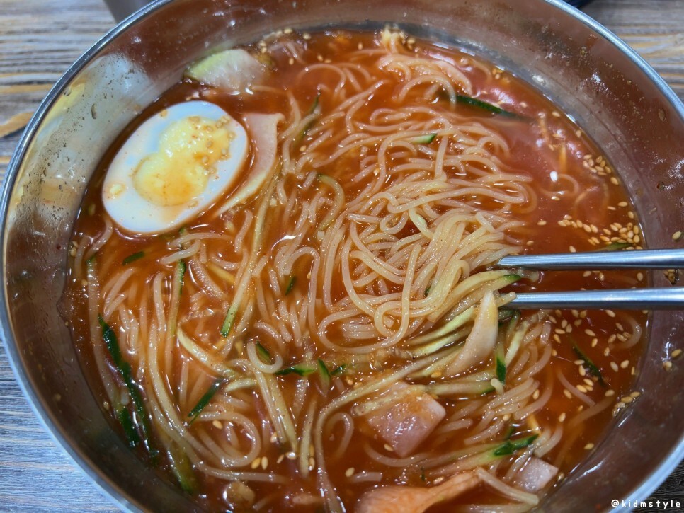 밀면의 최종 세척은 정수기 물을 사용한다고 한다.