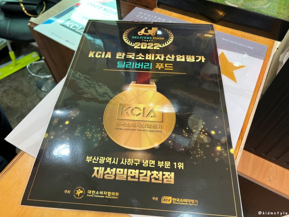 계산을 하면서 눈에 띄는 게 있어서 찍어본다. 사하구 냉면 부문 1위를 차지했다. 위생도 좋고 친절하고 배달로 먹기도 좋은 곳이네.