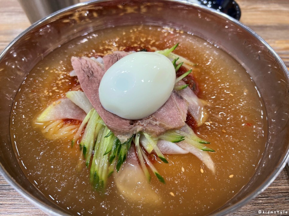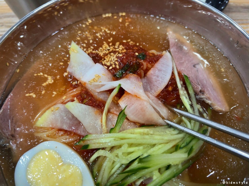 예전에도 말했지만 국물은 차분한 편이다. 단맛은 절제되어 있고 신맛 역시 덜 느껴지기에 차분하다고 표현해 본다. 사골 육수 베이스의 국물 덕분에 차분하지만 깊은 맛을 보여주는 국물이 입맛을 즐겁게 해준다.