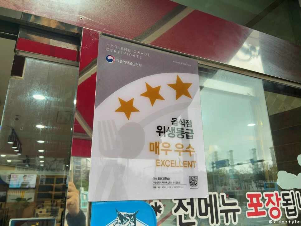 맛도 중요하지만 위생과 친절을 중요하게 생각하는 내 입장에는 반가운 음식점 위생등급이다. 매우 우수 별 3개