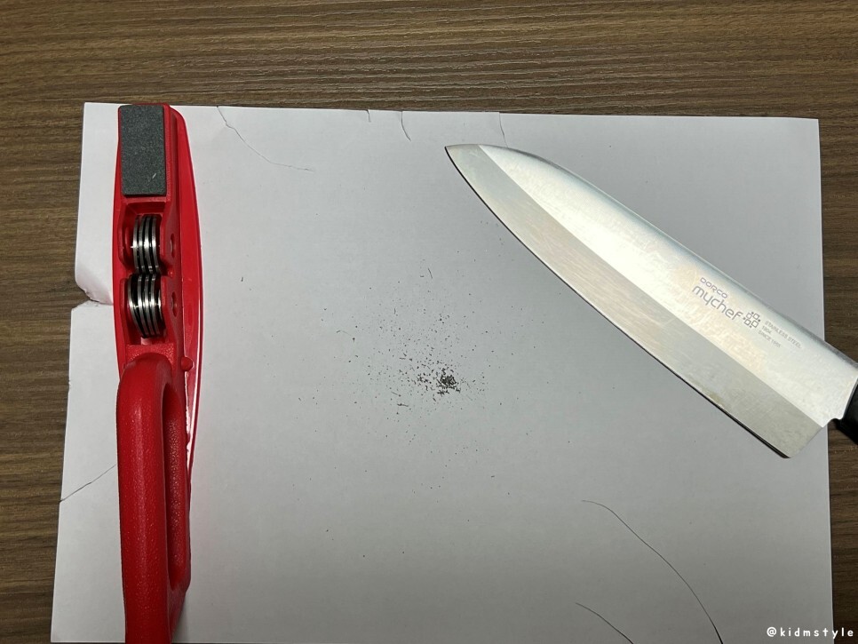 식도가 스테인리스 재질이라 갈다보면 스텐 가루가 발생하니 유의하기 바란다.