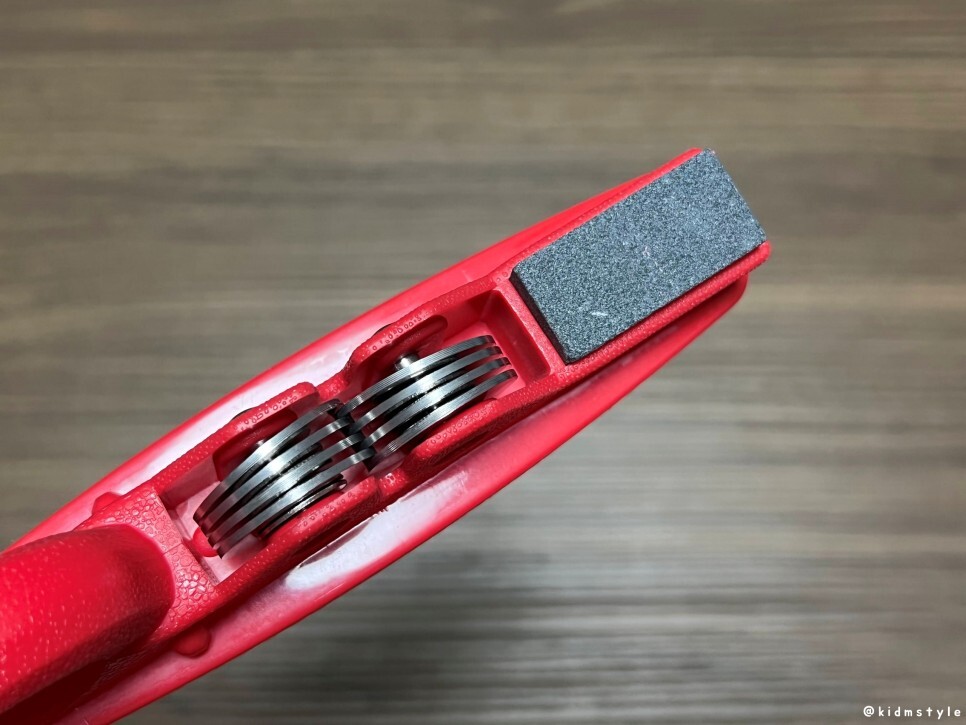 옆면을 보면 이런 모습이다. 손잡이 부분을 잡고 칼을 갈면 된다.
