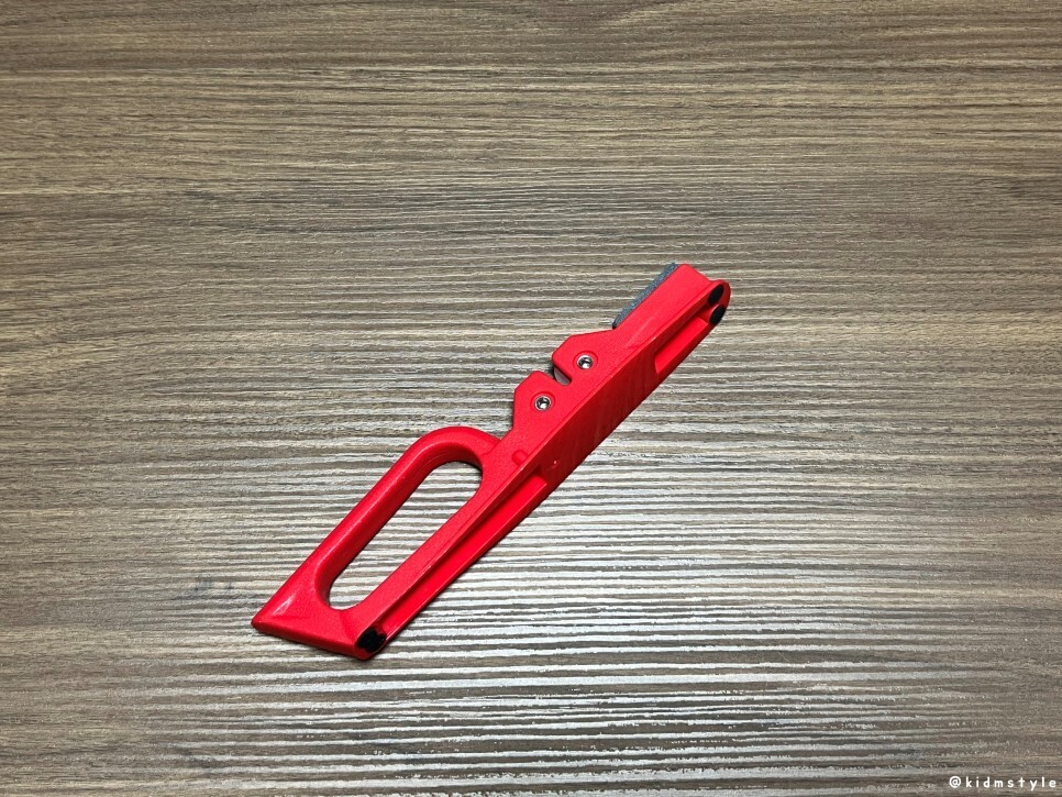 다이소에서 구입해온 제품이다. 스테인레스 칼갈이 knife sharpener라는 제품이며 가격은 2,000원이다. 숫돌이나 야스리, 연마봉을 제외한 칼갈이는 대부분 본 제품과 비슷한 구조로 되어 있기 때문에 저렴한 것을 구입하는 게 좋다. 2,000원이라는 갓성비.