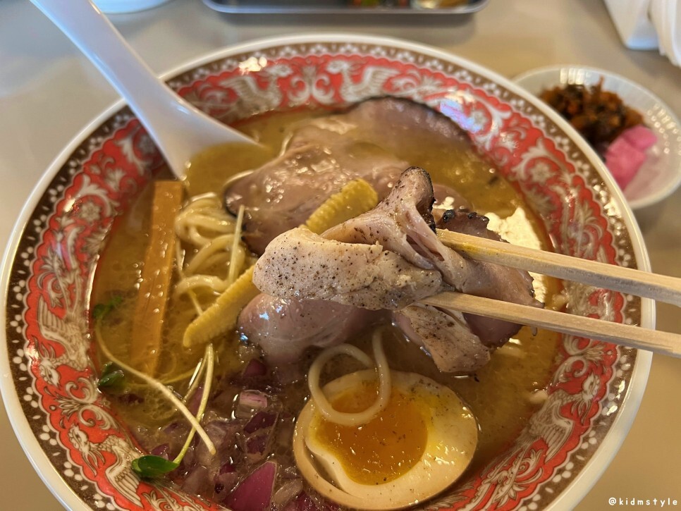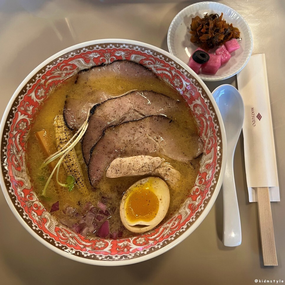 닭고기 역시 부들부들 잘 익었다. 이런 고명 하나하나가 모여서 맛있는 미소라멘 한 그릇이 완성되는데 마츠도는 정말 하나하나 허투루 하는 게 없이 성의 있게 만들어서 제공한다는 느낌을 받을 수 있다.