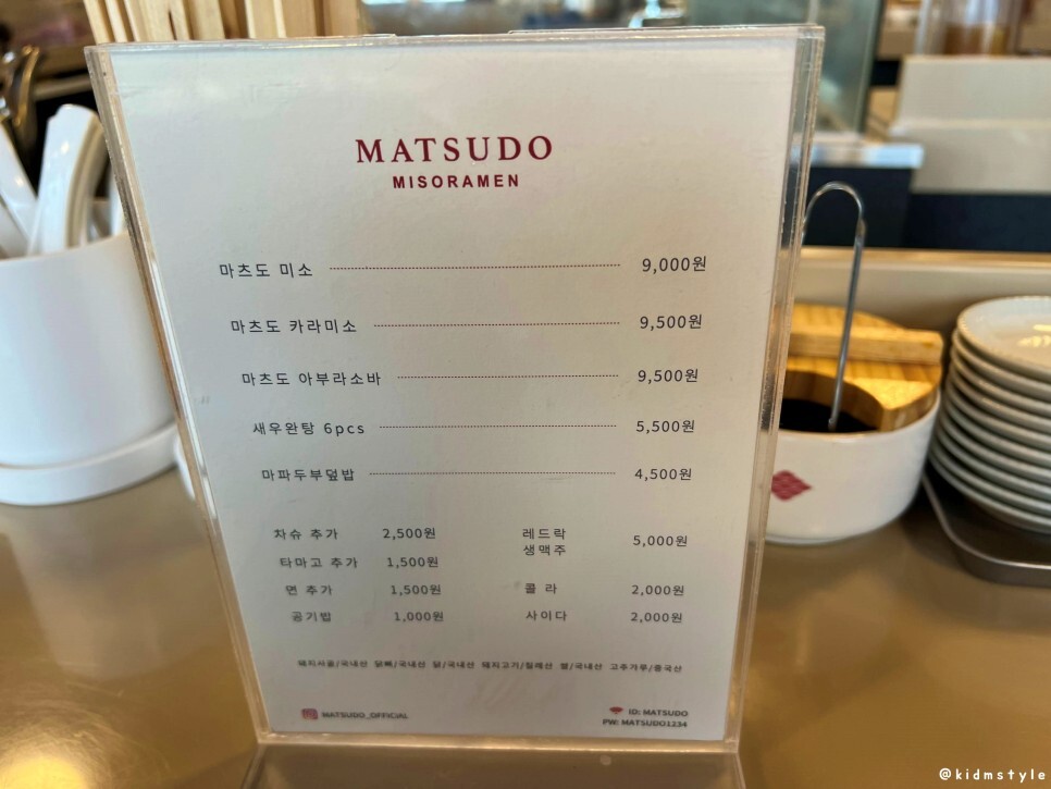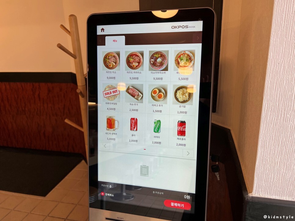 주문은 요즘 트렌드답게 키오스크로 하면 된다. 이 집은 미소라멘을 전문으로 하는 곳이라 고민하지 않고 마츠도 미소라멘 9,000원을 주문하였다.