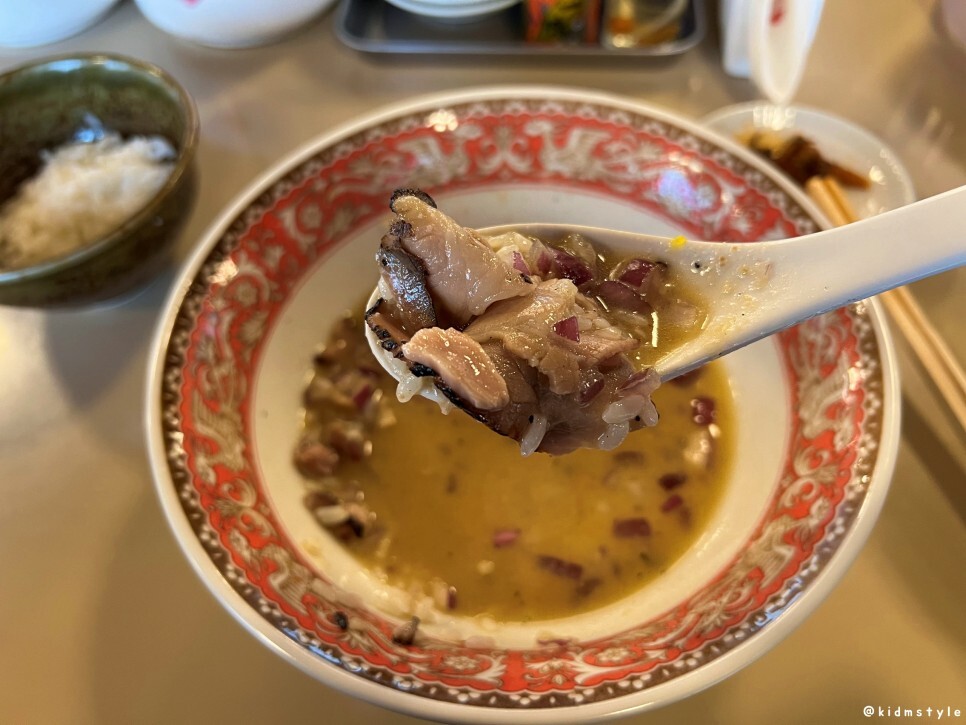 한 숟가락 떠서 국물에 적시고 맛본다. 맛이 없을 수가 없다.