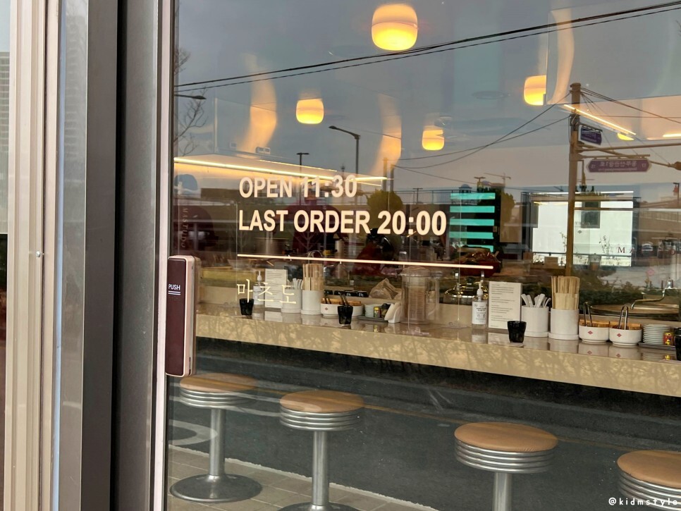 문에는 이렇게 붙어있는데 네이버 마이 플레이스를 찾아보니 영업시간이 오전 11시 ~ 오후 7시 30분 (마지막 주문, 오후 7시)이라고 한다. 마감 시간에 임박하게 방문할 예정이라면 문의를 하고 가는 게 나아 보인다.