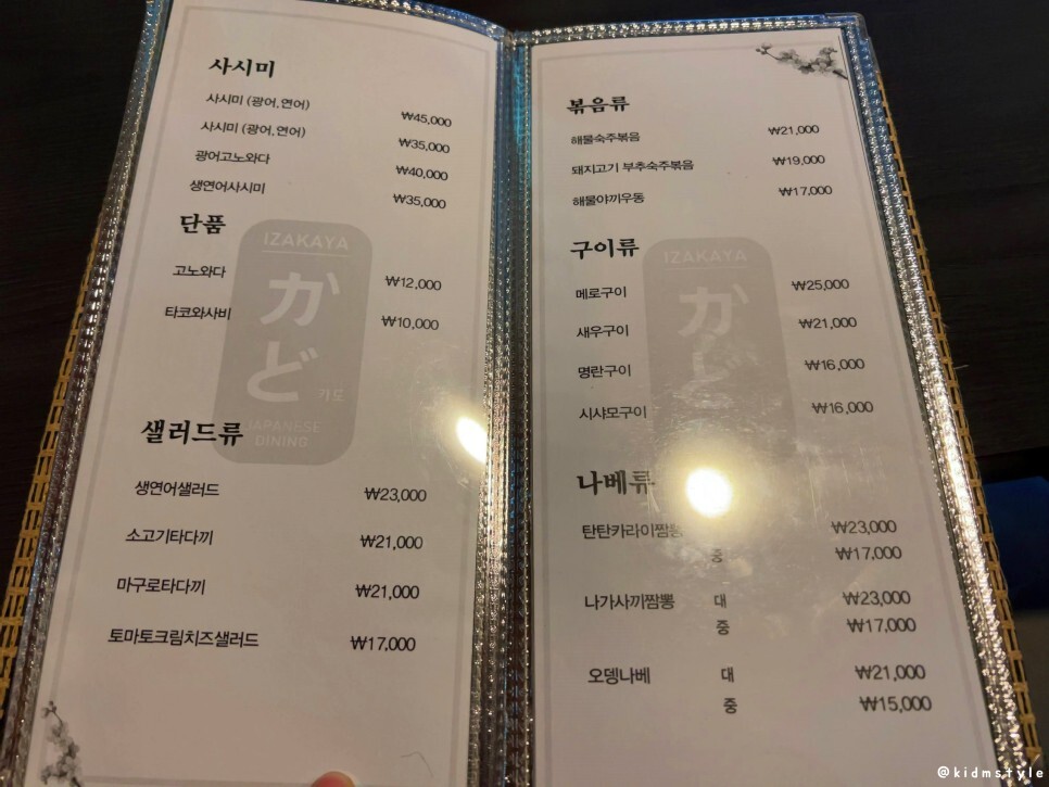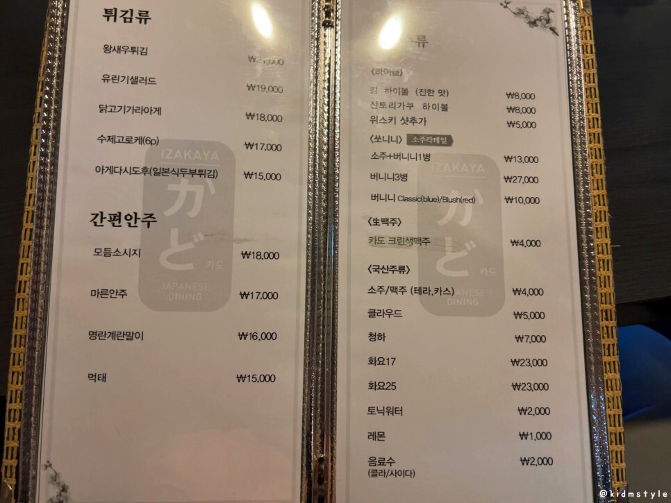 오래간만에 찾아간 카도는 여전하더라. 맛도 맛이지만 친절한 접객 때문에 단골이 계속 유지되는 모습이다. 내가 처음 방문한 게 2017년 초인데 그때나 지금이나 큰 변함이 없다. 마치 그 시절로 돌아간 것 같은 착각을 잠시 했다. 아~ 추억이여.