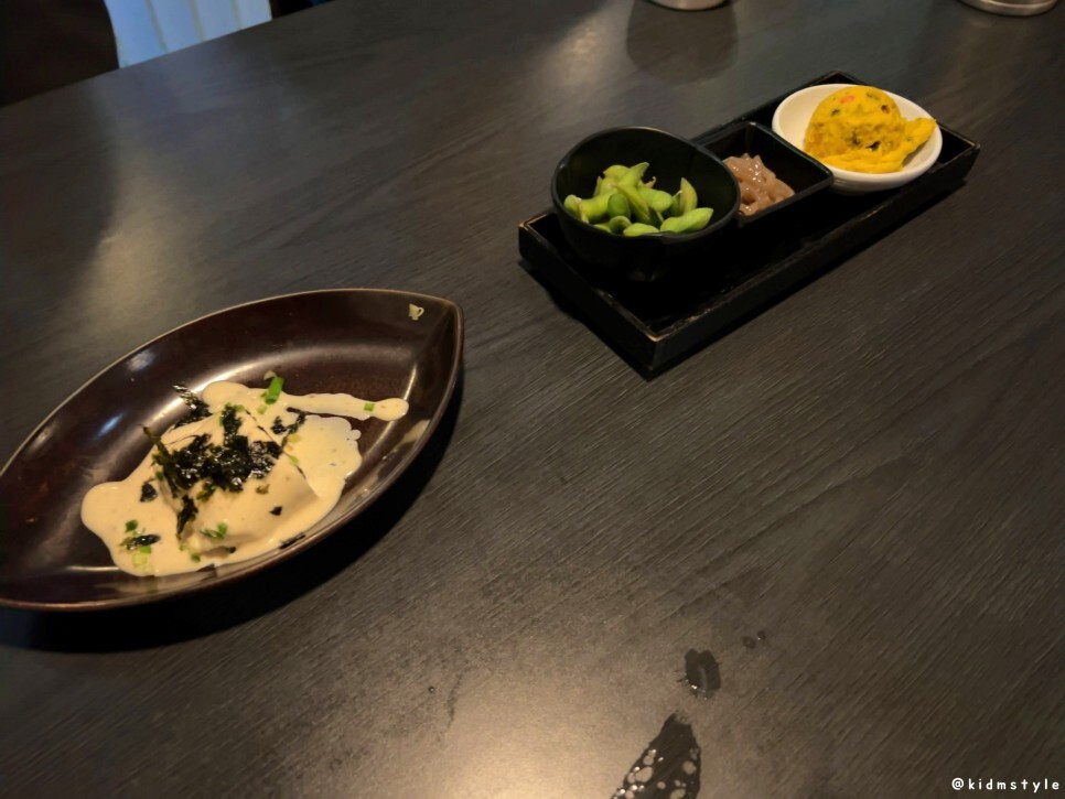 기본 안주가 나온다. 이걸로도 소주 한 병 가능하다. 연두부 소스가 참 부드럽고 맛있더라. 단호박 샐러드도 내 취향이다. 아 참, 여기 인기가 많은 이유 중 하나가 사장님이 아주 친절하다. 그리고 직원들도 친절하다.