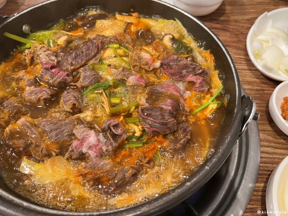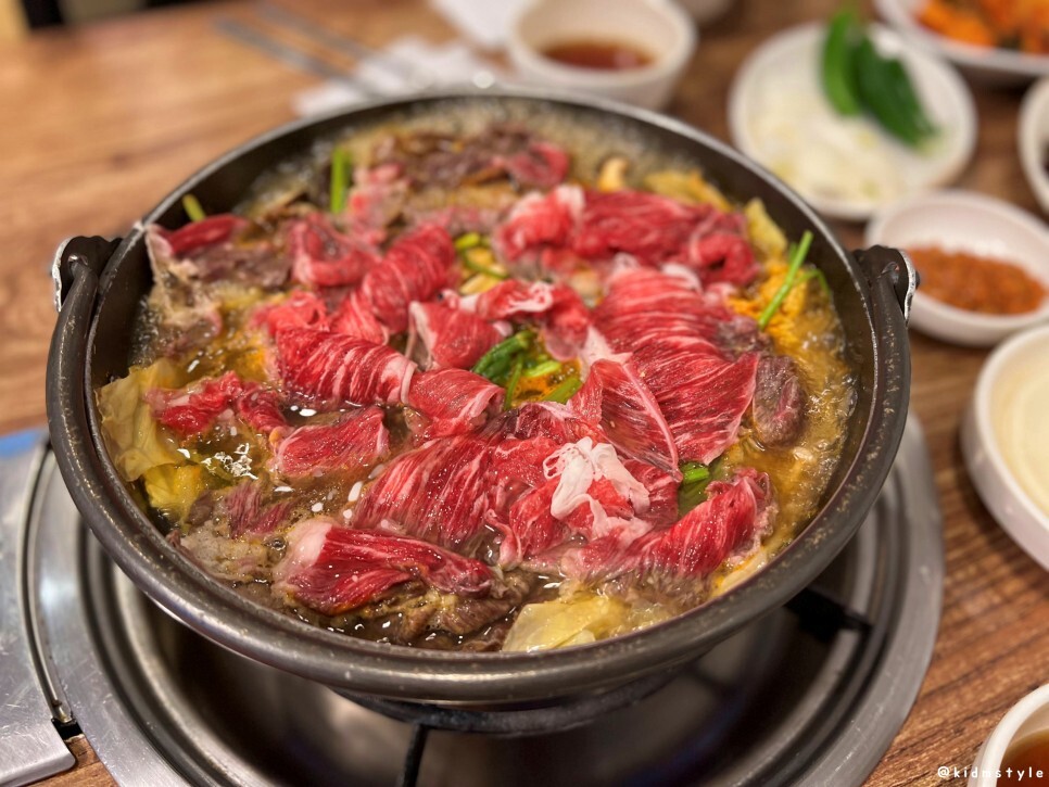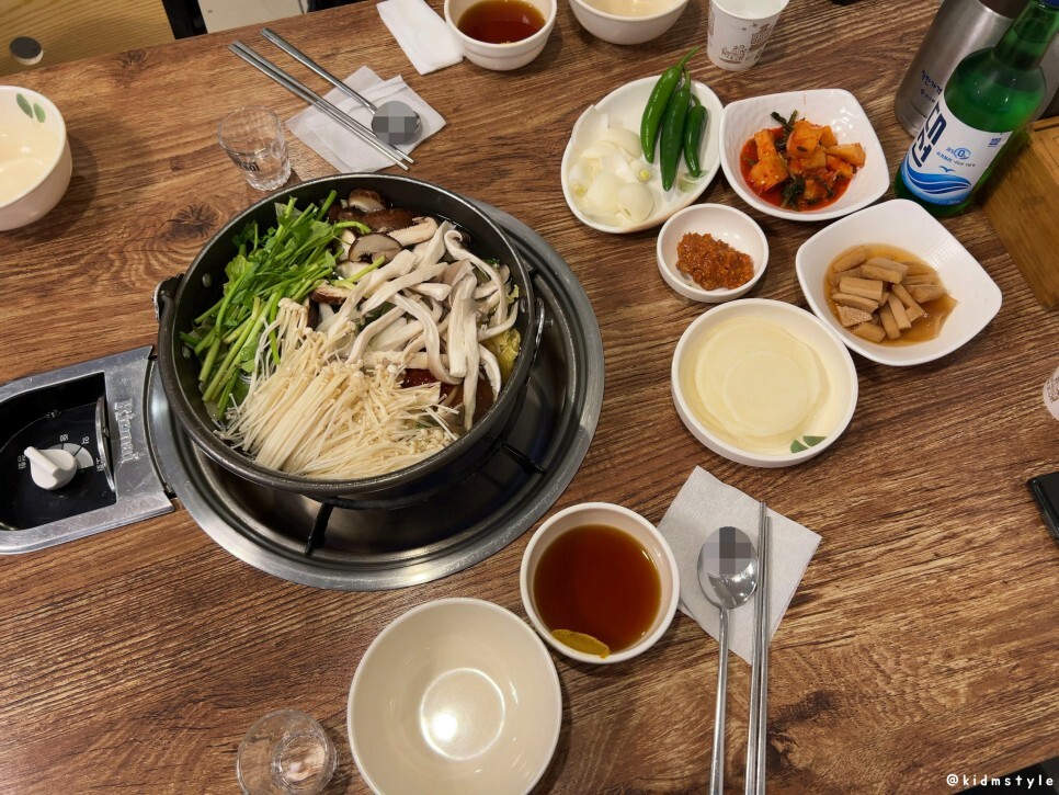 가격이 저렴한 편이다. 지금은 아마 올랐을 수도 있겠다. 두 명이라 소고기매운탕샤브샤브 1인분과 소고기상추샤브샤브 1인분을 주문했다. 부산 사람 대선 소주도 한 병.