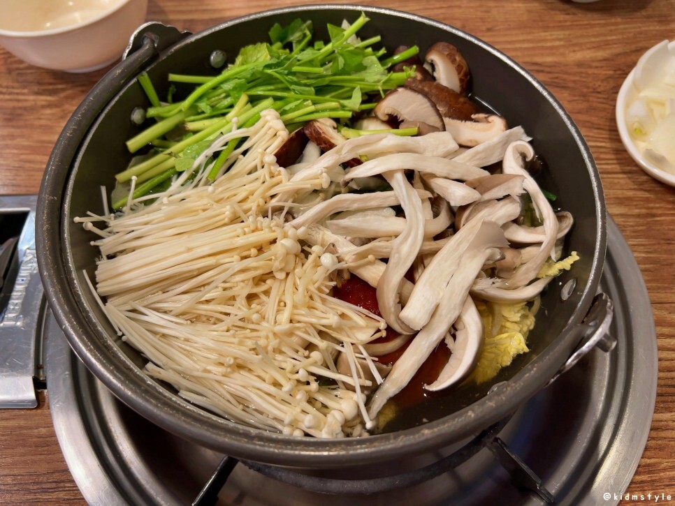 매운탕샤브샤브라 국물이 매콤한 게 소주 한잔하기 딱 좋다. 한잔한다면 내가 주문한 구성으로 추천한다.