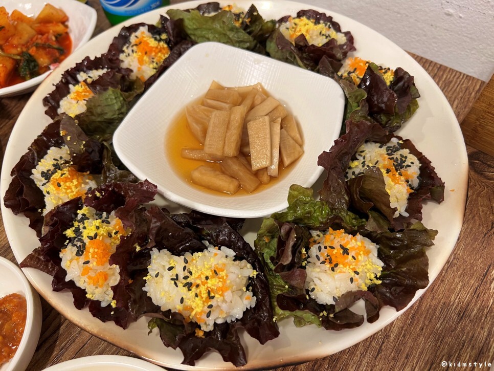 상추에 싸서 먹으면 꽤 든든하다. 밥 양이 많다.