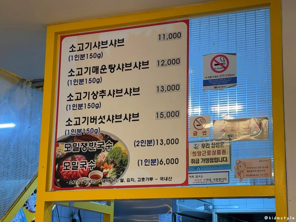 3월 초 아직은 추운 날씨라 뜨끈한 샤브샤브 국물을 생각하니 입구에서부터 군침이 돈다. 이 집은 착한가격 모범업소, 안심식당이다.