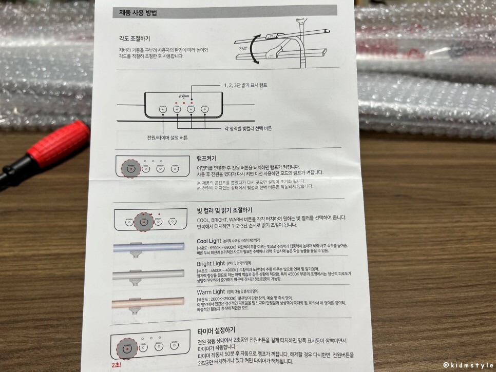오늘 소개한 제품은 현재 보편적으로 판매 중인 led 스탠드 중에서 인기가 가장 많은 제품이라고 봐도 무방하다. 스탠드형과 클램프형이 있는데 공간 절약을 위해서 클램프형을 선택한 것이 좋은 선택이었다.