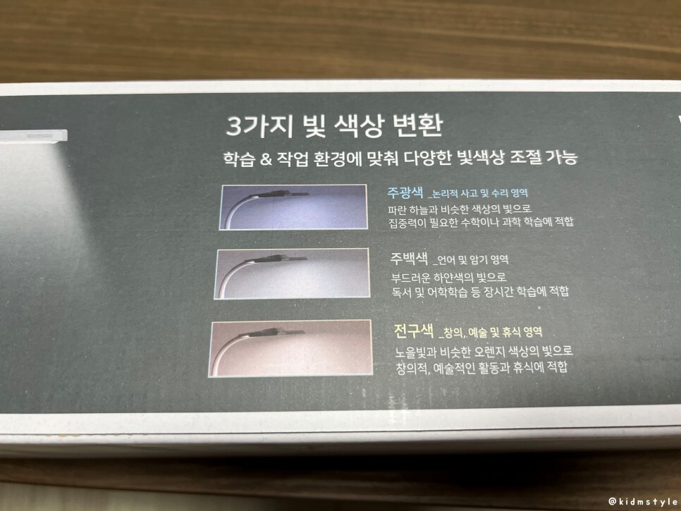 주광색 cool의 색깔은 이렇다. 천장의 조명이 주광색이라 익숙한데 책상용 스탠드로 하기에는 조금 눈이 아프네.