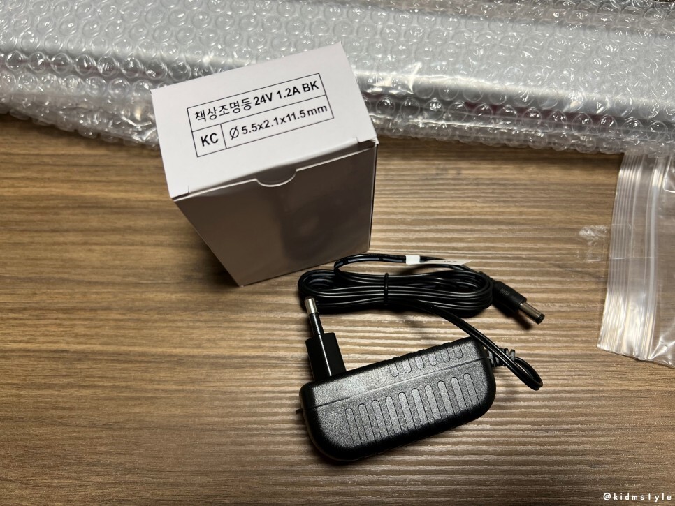 어댑터가 들어있는데 스탠드에 연결하여 전원공급을 하는 역할이다. 24v 1.2A 짜리 어댑터이다.