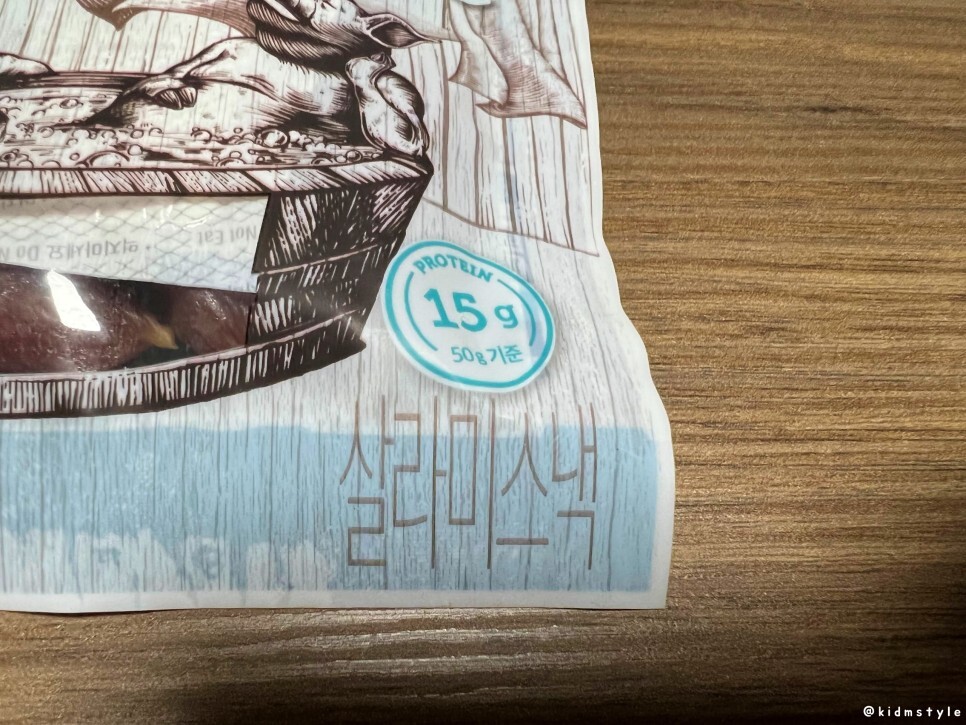 살라미스낵 50g 한 봉지에 프로틴이 15g 들어가 있다고 한다.