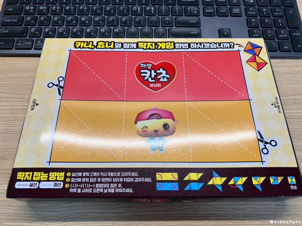 상자 뒤면에는 딱지를 만들 수 있게 되어 있다. 어릴 때 이런 걸 만들어서 재미있게 놀았던 기억이 난다.