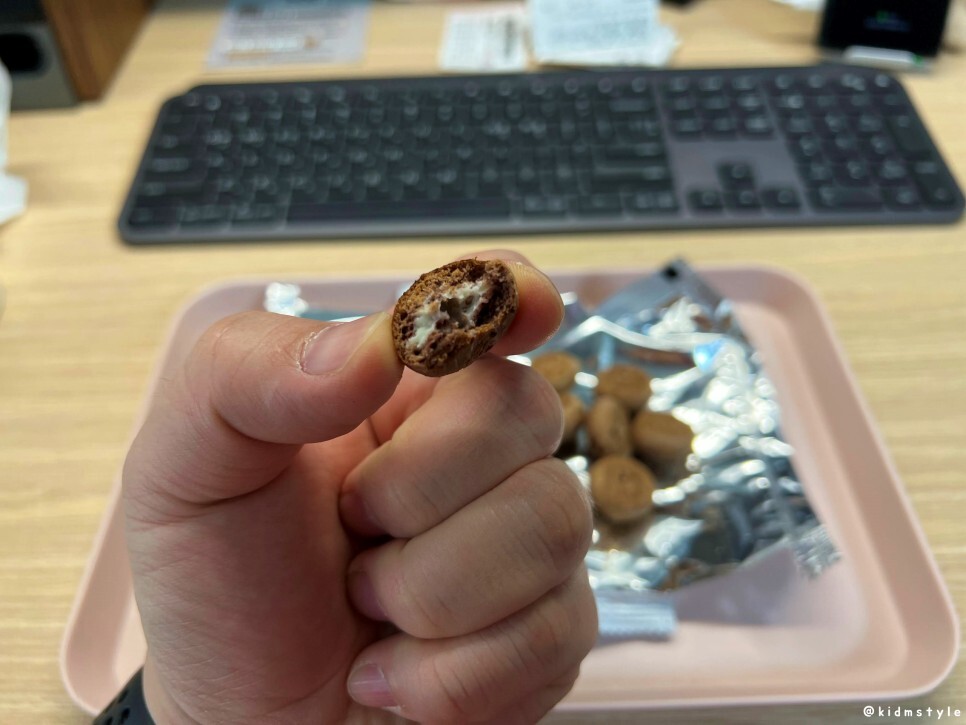 하나 집어서 맛을 본다. 안에 크림이 들어가 있다.