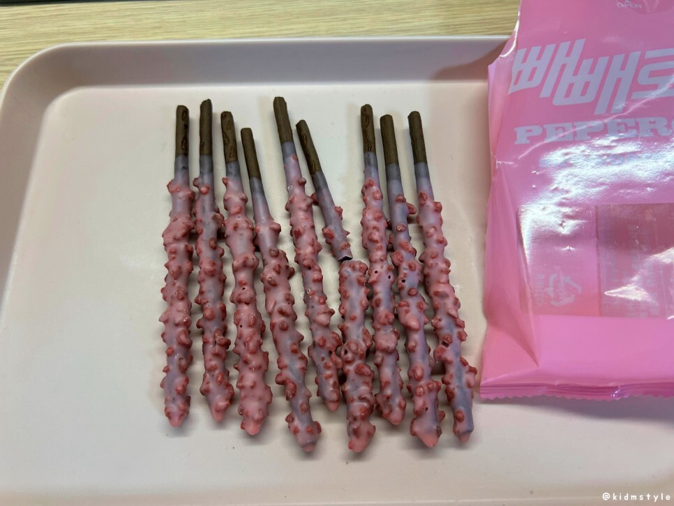 한 봉지에 9개가 들어가 있으니 하나에 100원이 넘네? 솔직히 빼빼로 한통 먹으면 감질난다.