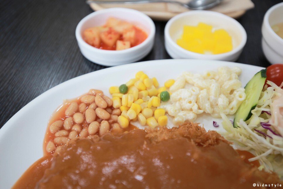 딱 봐도 두툼해 보인다. 그래 양분식 돈까스는 소스도 넉넉하고 이래 두툼해야지. 중앙동의 이백현 옛날돈까스와 너무 비교되네. 샐러드 등 사이드도 참 비교된다. 일단 비주얼만 봐도 멀리 운전해 온 보람이 느껴진다. 내 기준으로 먹으러 갈 때 30분 이상 운전한 것은 멀리 가는 것이다.