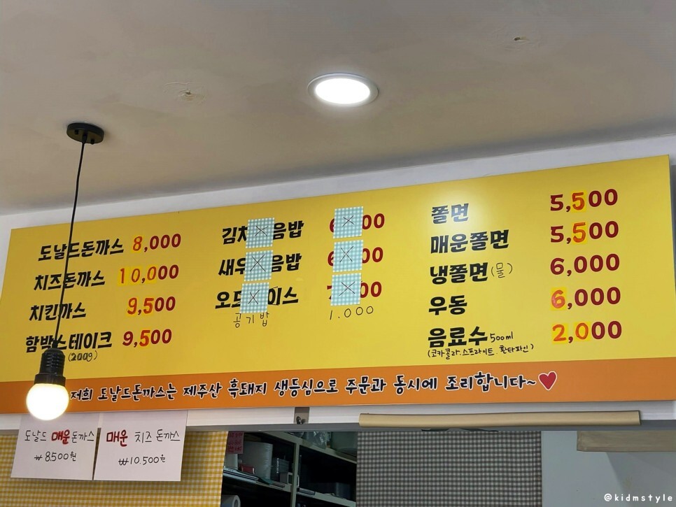 원산지 표시판이 상세하게 적혀있다. 제주 돼지로 어떤 돈까스를 선보일지 궁금하다.