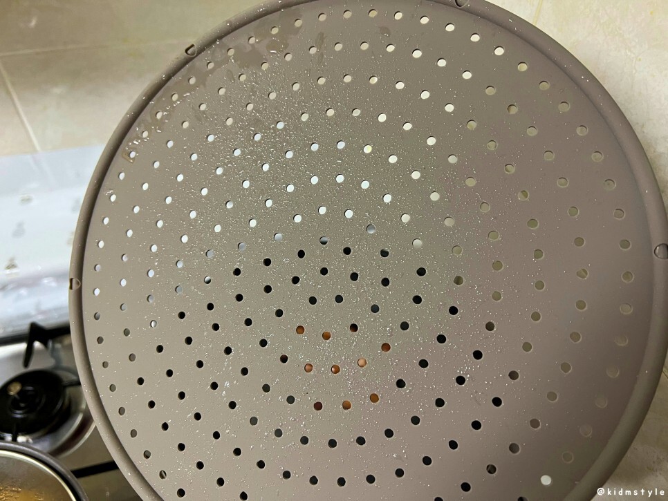 기름은 이렇게 뛰고 사이사이로 수증기가 빠져나가서 요리의 방향이 흐트러지거나 하는 게 없다. 세척은 그냥 싱크대에 수세미와 세제로 하니 금세 깔끔하게 정리가 된다.