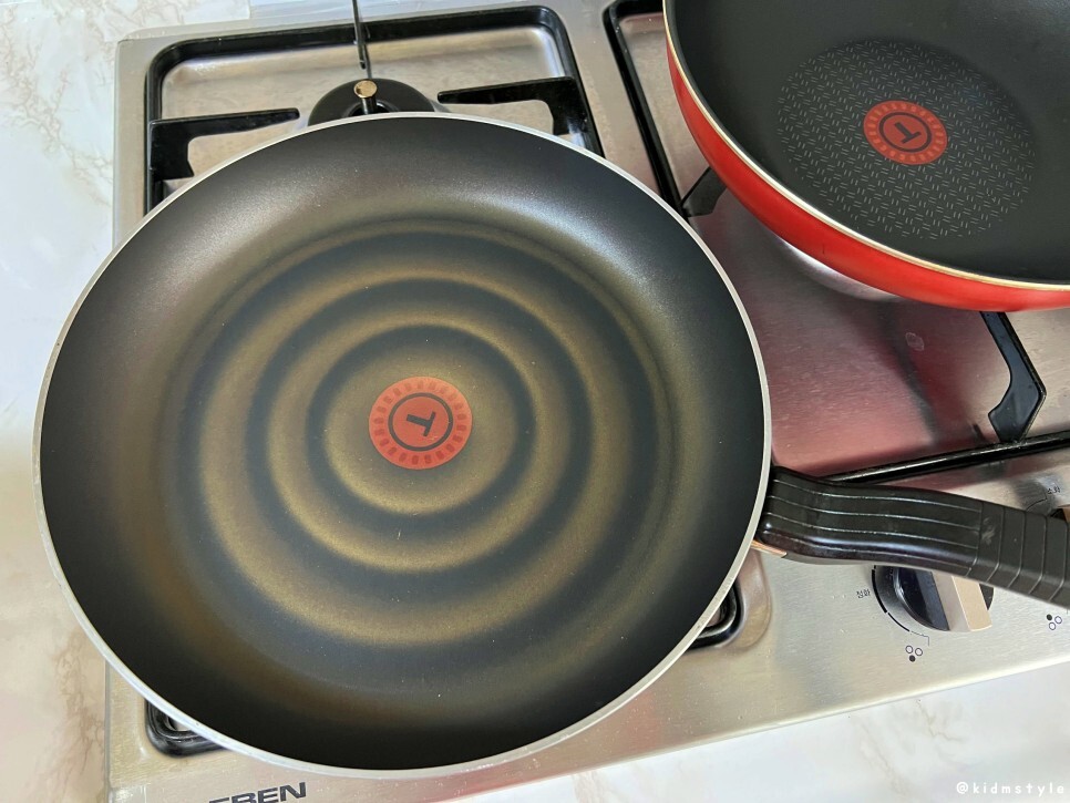 이어서 일반 후라이팬인 테팔 쏘옵티말 프라이팬 28cm 제품을 꺼내보았다. 나는 평소 요리할 때 궁중팬이 훨씬 쓰기 좋아서 이 팬은 부추전 등 뭔가를 넓게 구울 때만 사용하게 되더라.