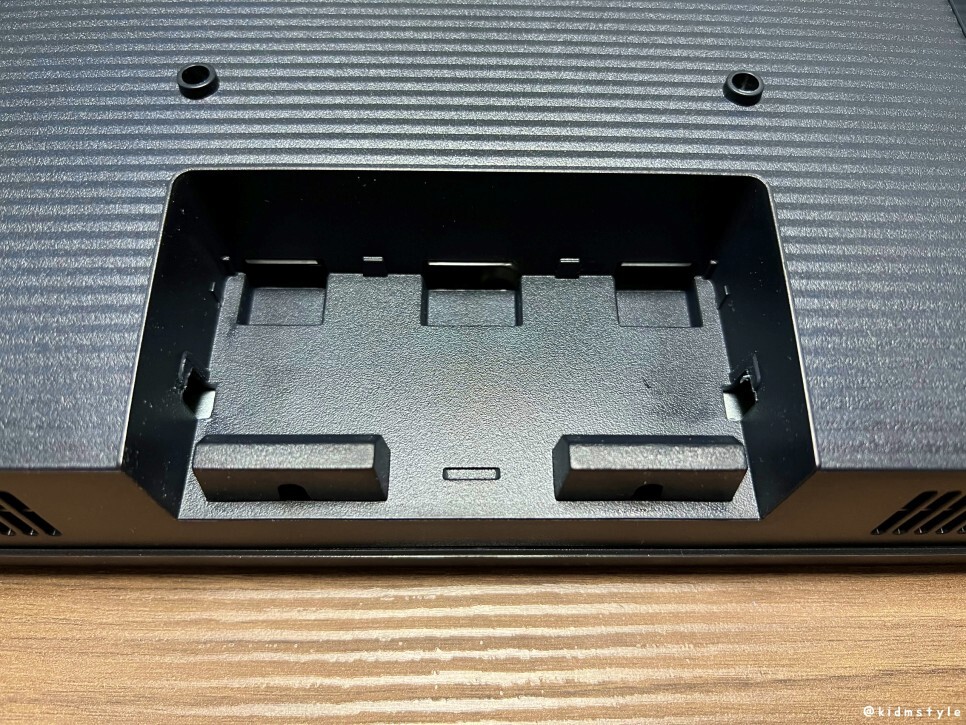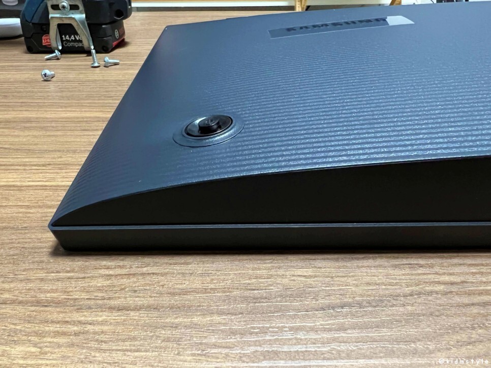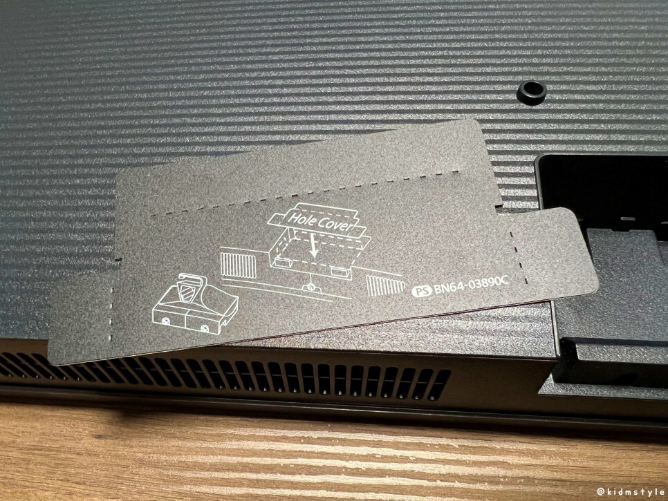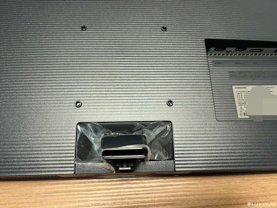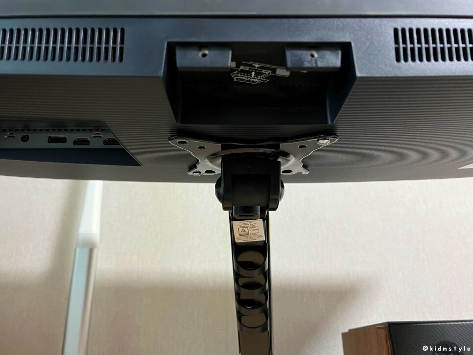 100 * 100 베사홀이 보인다. 그리고 아래에는 스탠드를 끼울 수 있게 되어 있는데 나는 모니터암을 사용할 예정이므로 스탠드 결합부는 제거할 것이다.