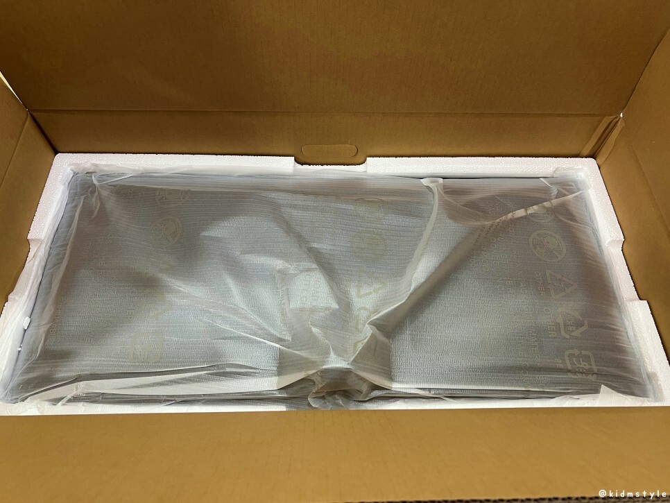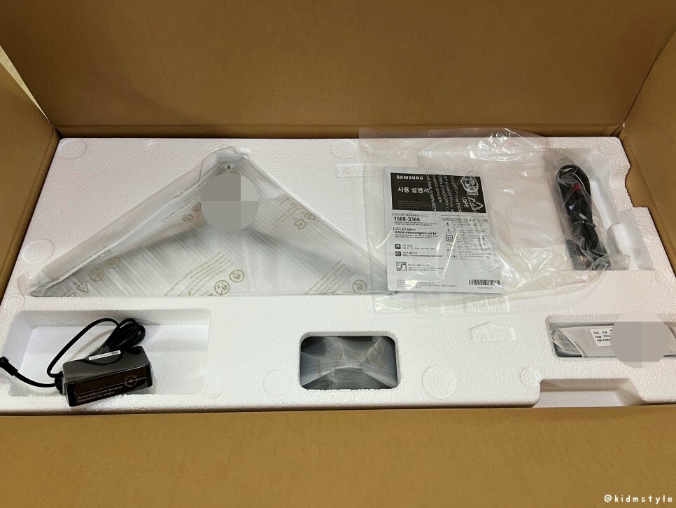 스티로폼 포장을 들어보니 모니터가 보인다. 사이즈가 상당히 크다. 모니터 화면만 놓고 봐도 가로 82cm, 세로 37cm 정도 된다.