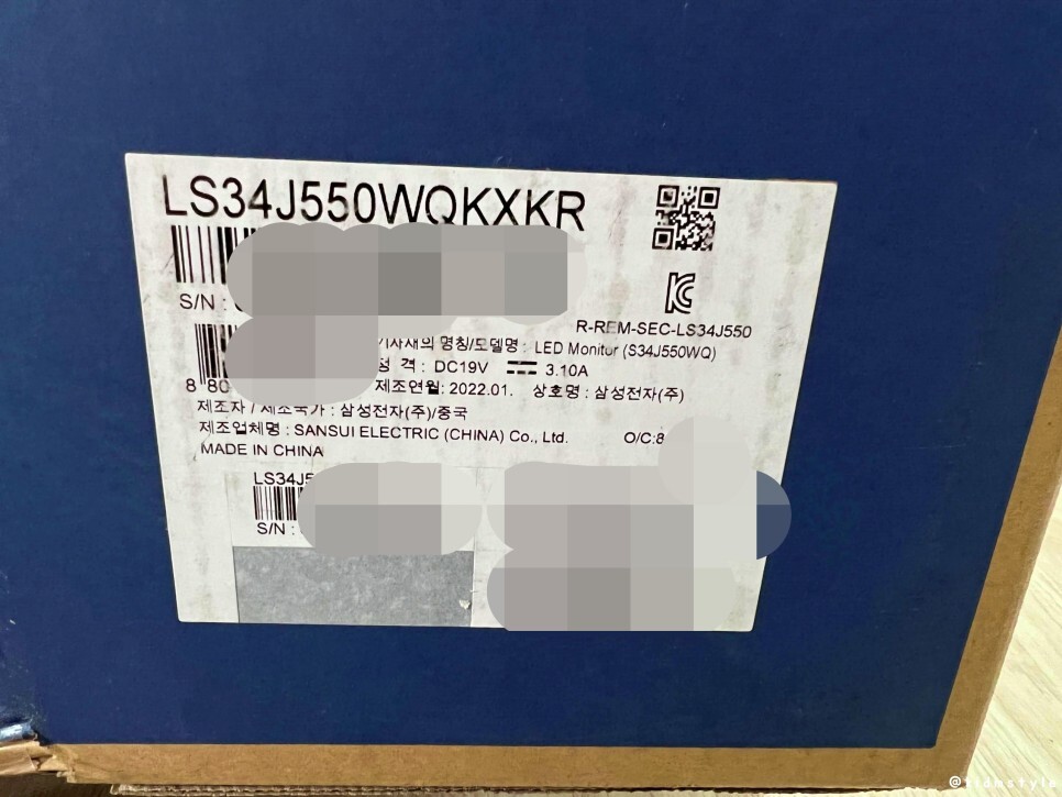 내가 구입한 제품은 삼성 울트라 와이드 QHD 34인치 모니터이며 모델명은 LS34J550WQKXKR, 인터넷에 검색 시 S34J550으로 검색하면 된다.