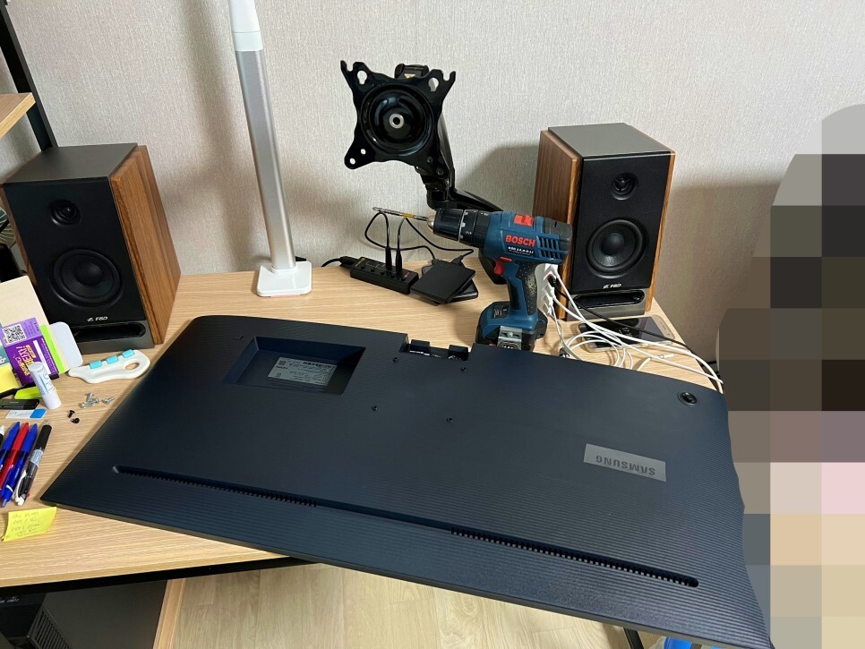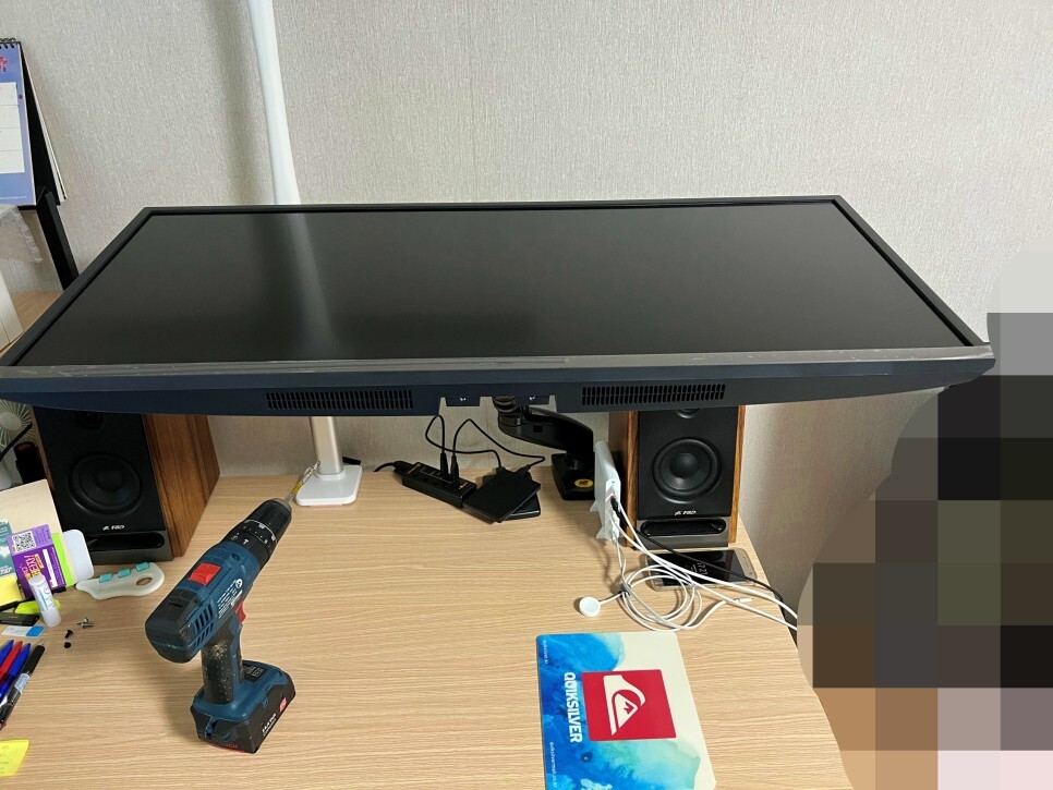 기존에 사용하던 모니터를 모니터 앞에서 분리했다. 그리고 스탠드는 쭉 펴서 일단 거슬리는 게 없도록 세팅하였다.