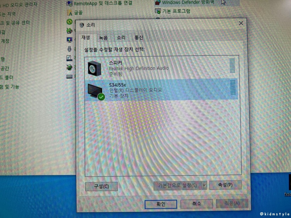 그리고 모니터에 스피커가 내장되어 있으므로 기존 스피커를 사용하기 위해서는 모니터 스피커를 죽여야 한다.
