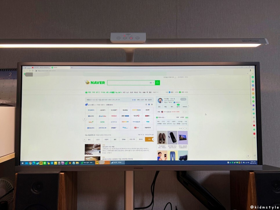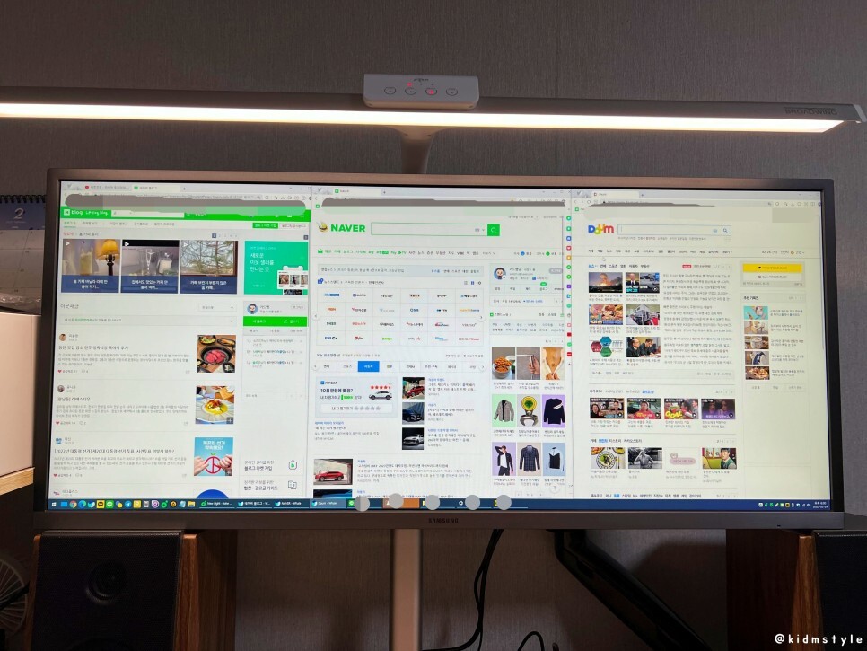 모니터가 옆으로 넓어서 상당히 편하다. 인터넷 창을 3개 동시에 띄울 수 있다.