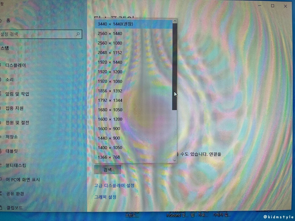 기본으로 적용된 해상도는 3440*1440인데 글씨가 너무 작다. 설정을 바꿔야 할 필요가 있다.