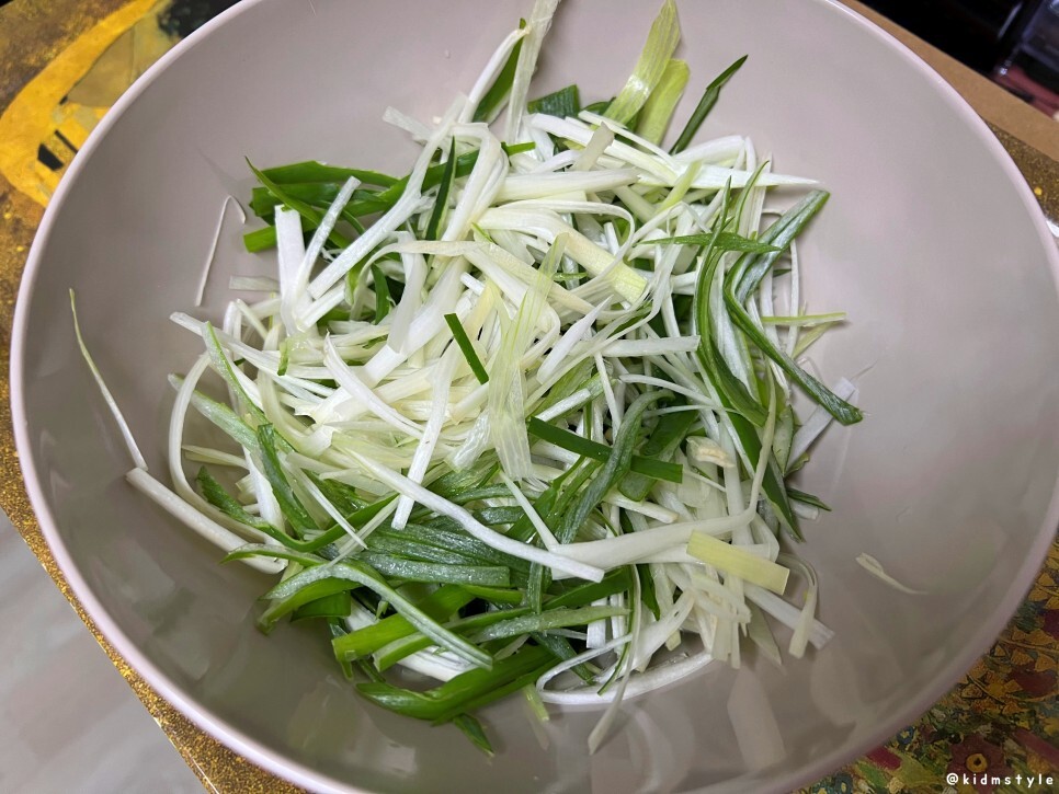 파재래기를 해먹고 싶은데 파채를 사 온다는 걸 깜빡했다. 마침 냉장고에 대파가 있어서 대충 칼질을 하며 파채 흉내만 내본다. 조금 더 심혈을 기울여서 잘게 썰걸 그랬나?