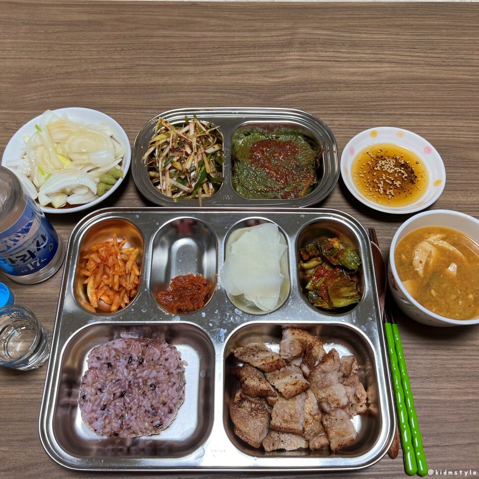 삼겹살은 에어프라이어에 넣고 돌린다. 기름이 쫙 빠져서 훨씬 맛있더라.