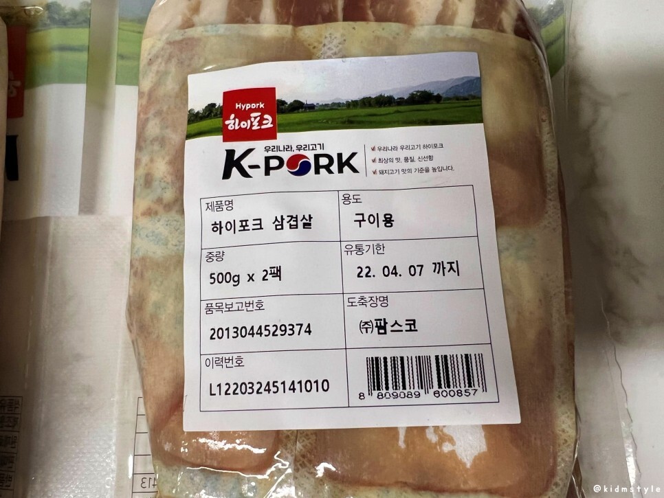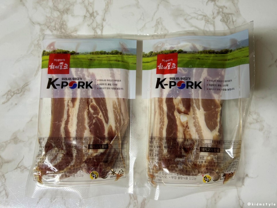 쿠팡에서 로켓프레시로 저렴하게 구입한 하이포크 삼겹살 500g 2팩이다. 구워 먹고 남은 고기는 한 줄씩 소분해서 냉동 보관해 둘 생각이다. 찌개에도 넣고 가볍게 구워서 밥반찬으로 하기에도 좋다.