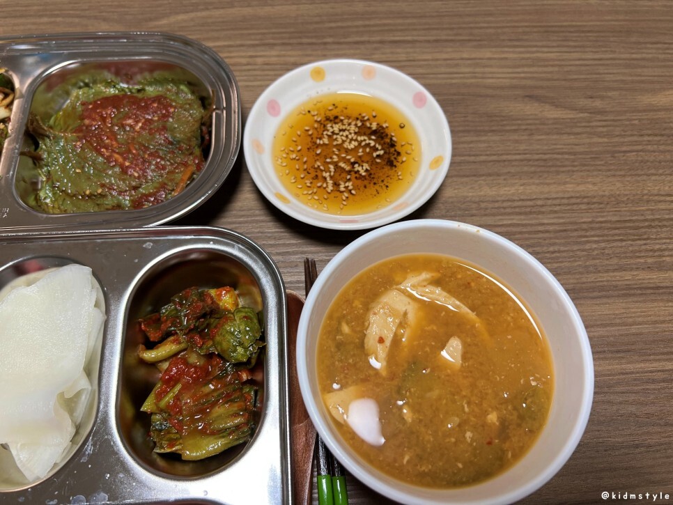 순두부를 넣고 끓인 된장찌개, 엄마표 청갓김치, 깻잎김치