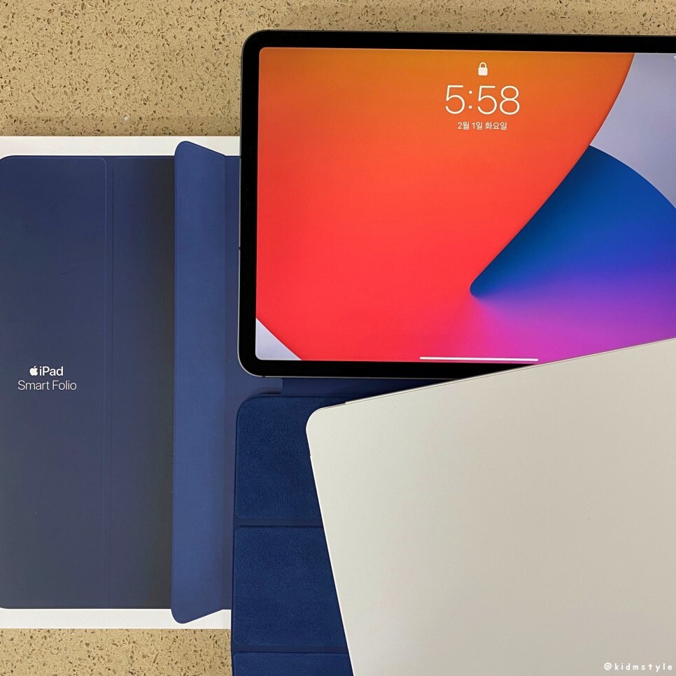 아이패드 프로 3세대 11인치용 스마트폴리오의 무게는 175g이며, 애플 공홈 가격은 99,000원이다. 가격이 조금 비싸긴 한데 직접 만져보면 퀄리티가 상당히 좋다.