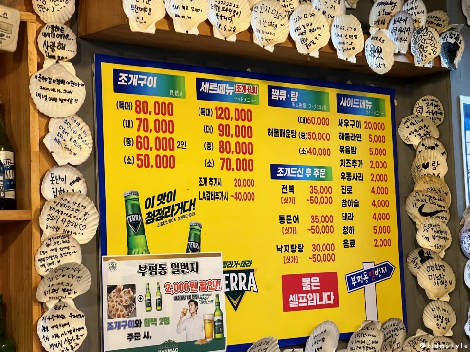 갑자기 조개구이가 먹고 싶어졌다. 퇴근하고 송도나 태종대까지 넘어가기에는 좀 늦고 해서 근처에 찾아보았다. 부평동에 매번 지나가는 술집 골목에 부평동일번지라고 하나 나오네. 그래 오늘은 여기 한번 가보자.