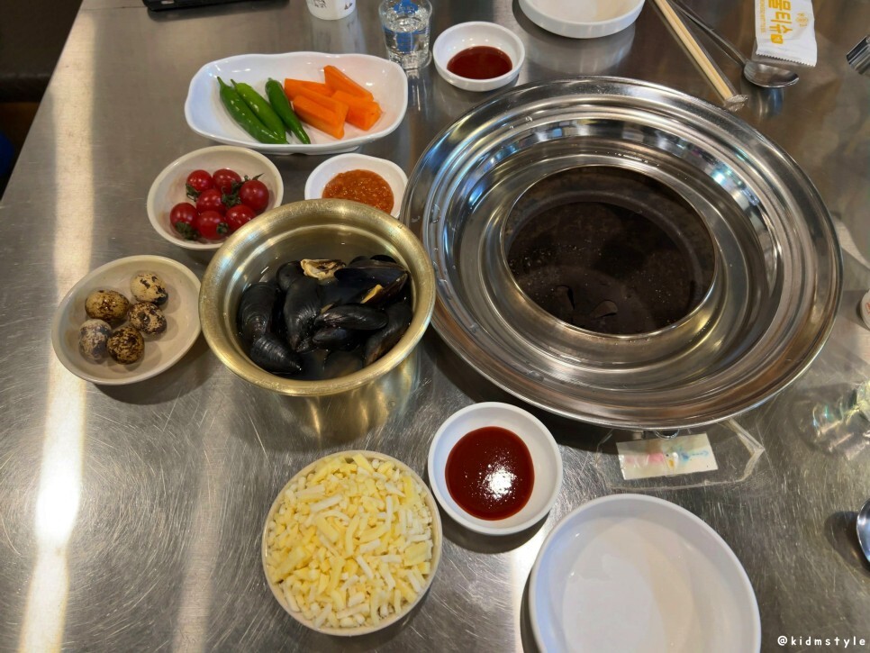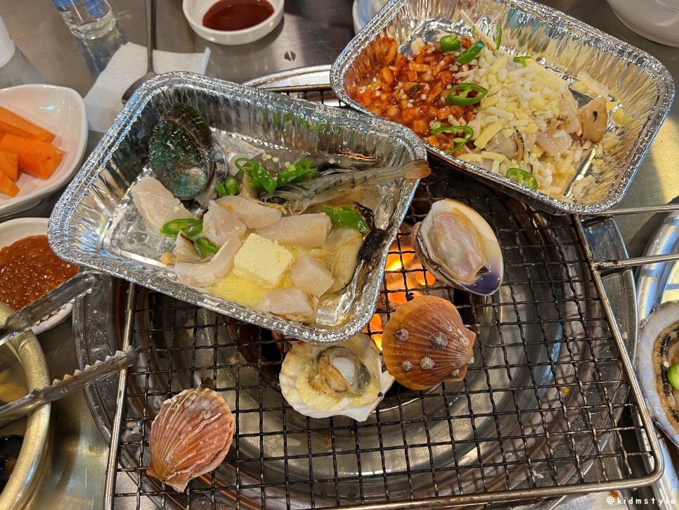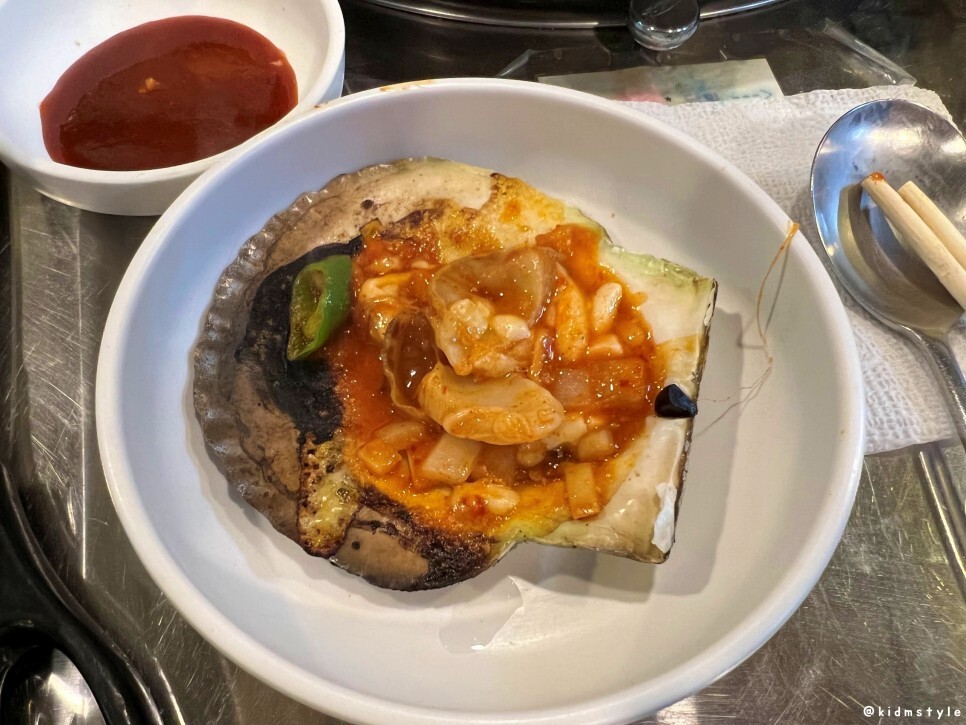 불판 위에 가리비 먼저 올려주고 양념 접시를 올리니 사장님이 와서 설명을 해주시네. 딱히 친절하지는 않고 그렇다고 불친절하지도 않고 암튼 그렇다.
